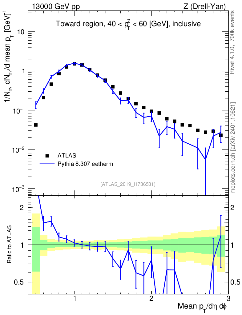 Lines: data, pythia8 8.307 eetherm |