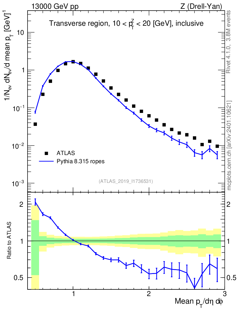 Lines: data, pythia8 8.315 ropes |