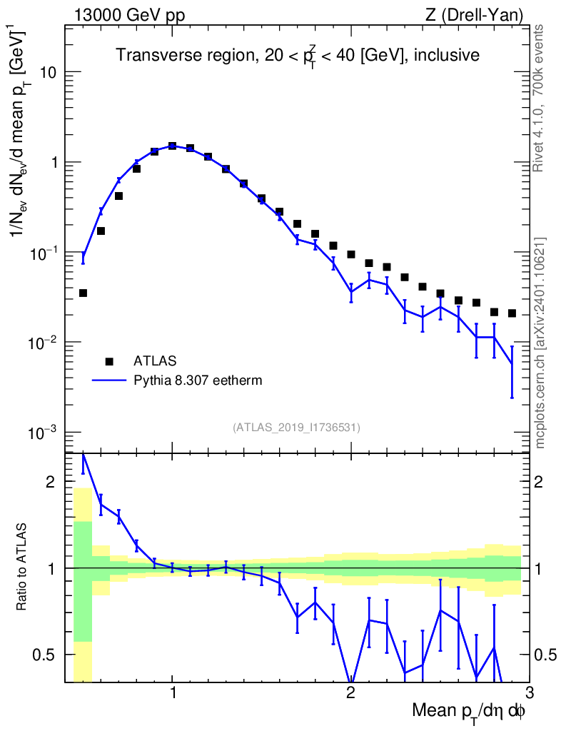 Lines: data, pythia8 8.307 eetherm |
