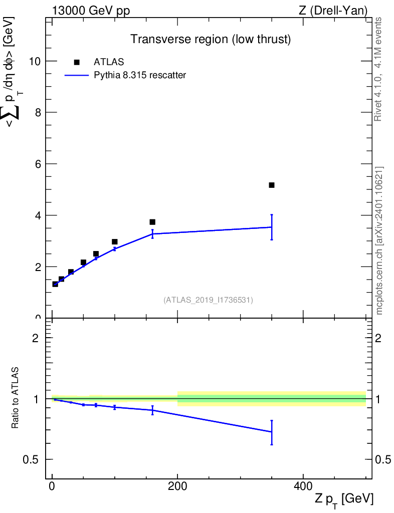 Lines: data, pythia8 8.315 rescatter |