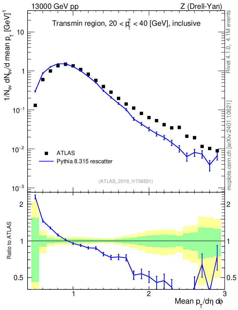 Lines: data, pythia8 8.315 rescatter |