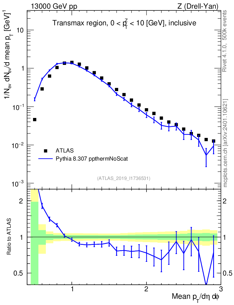 Lines: data, pythia8 8.307 ppthermNoScat |