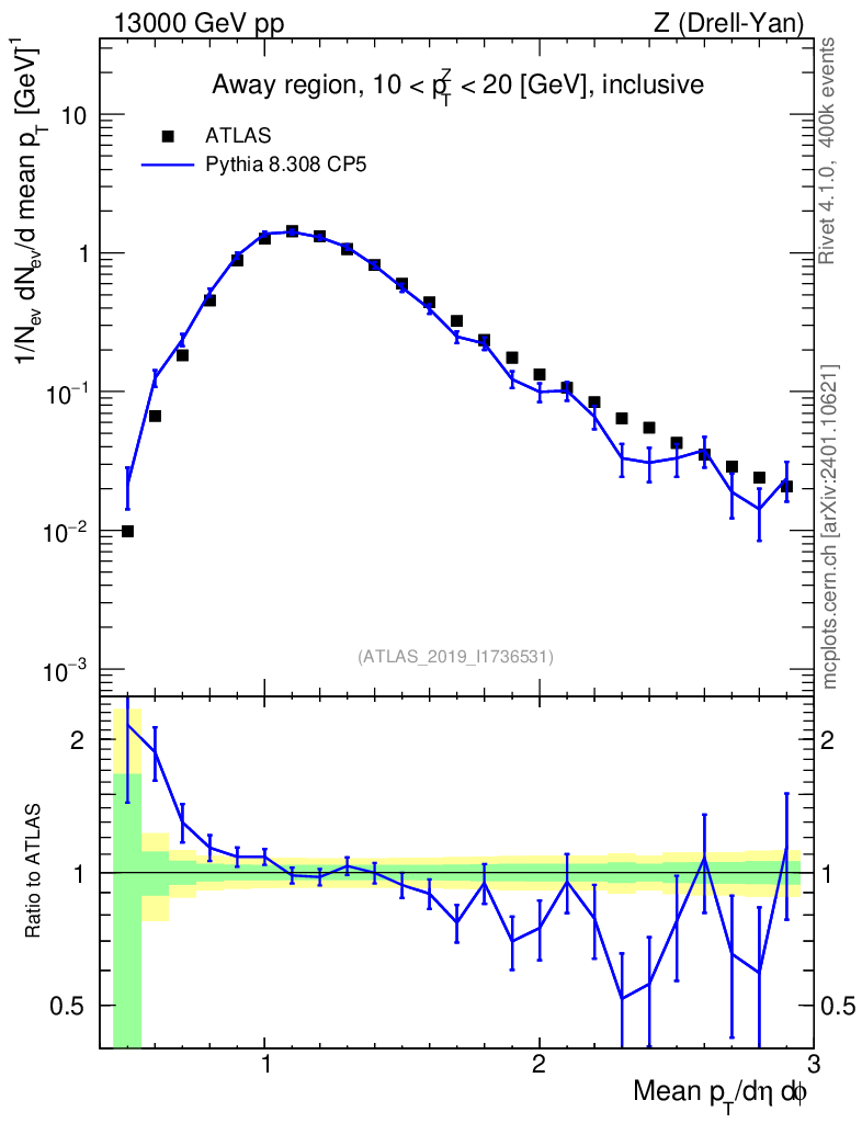 Lines: data, pythia8 8.308 CP5 |