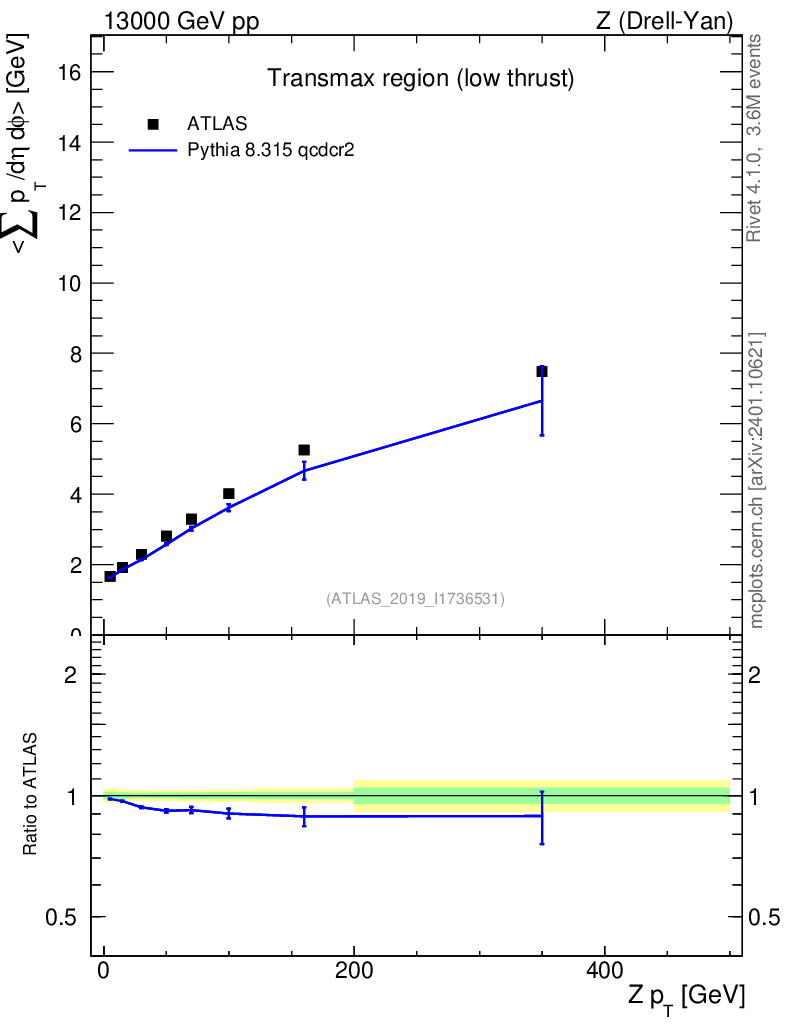 Lines: data, pythia8 8.315 qcdcr2 |