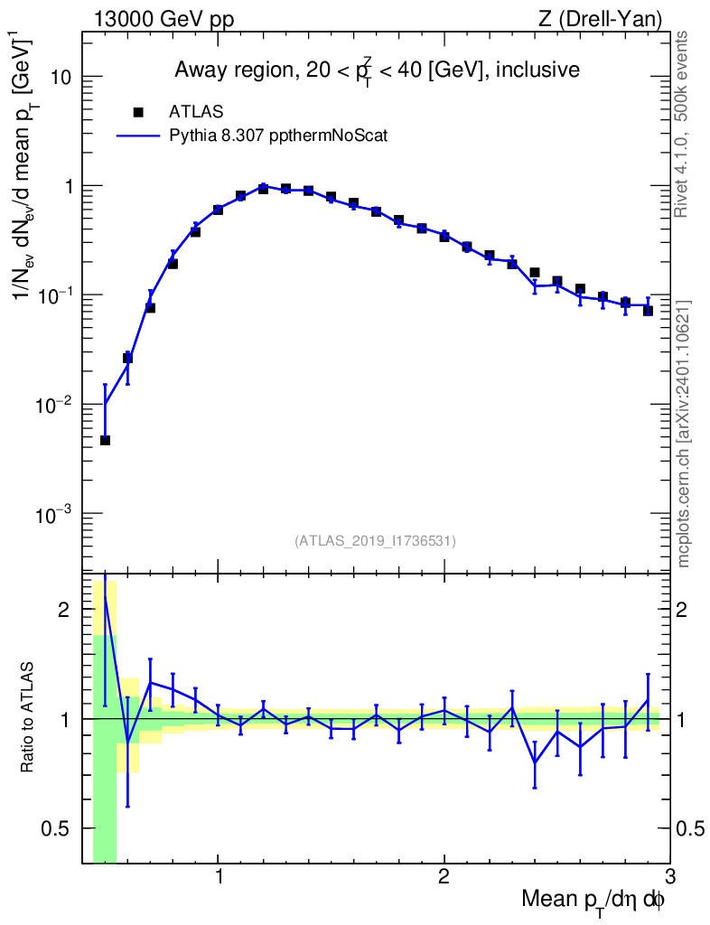 Lines: data, pythia8 8.307 ppthermNoScat |