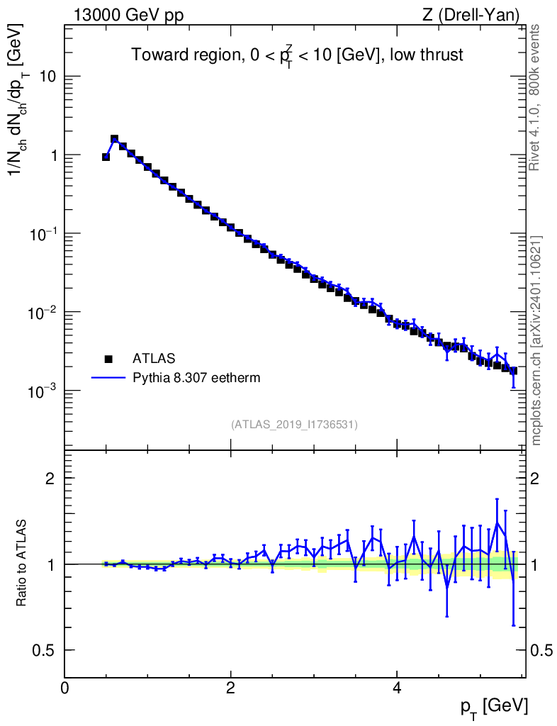 Lines: data, pythia8 8.307 eetherm |