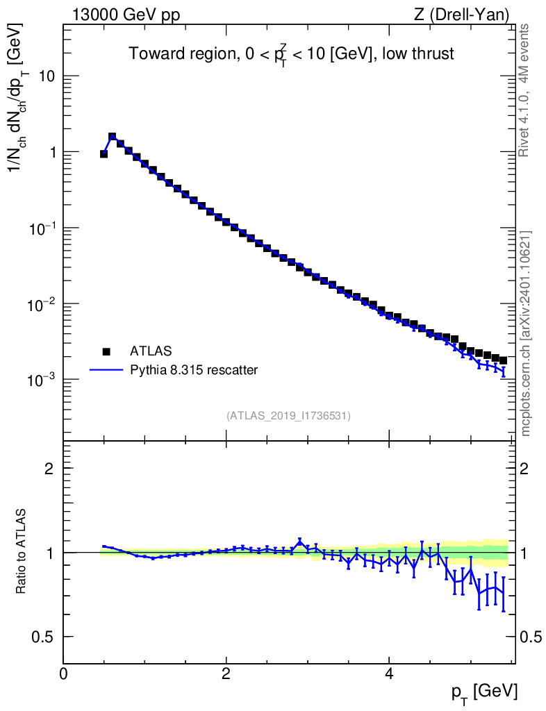 Lines: data, pythia8 8.315 rescatter |