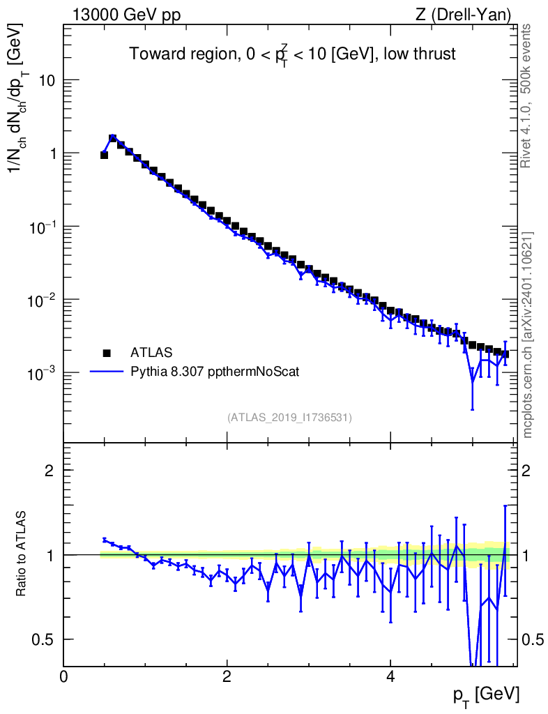 Lines: data, pythia8 8.307 ppthermNoScat |