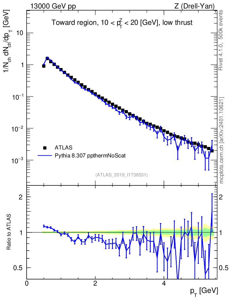 Lines: data, pythia8 8.307 ppthermNoScat |