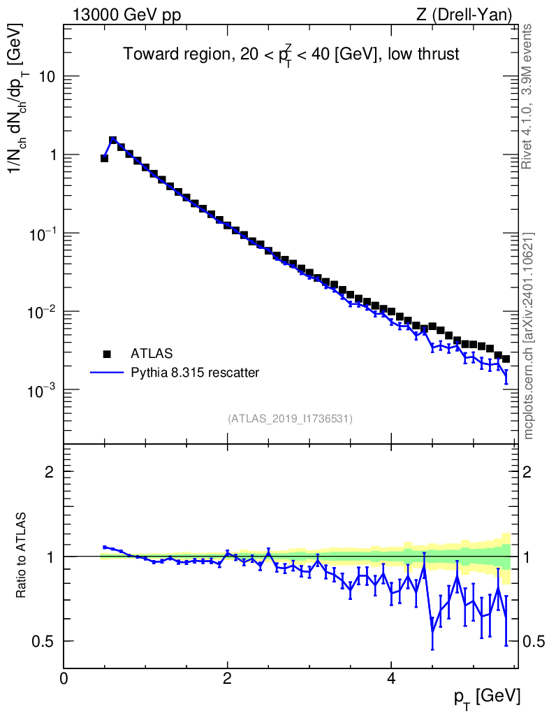 Lines: data, pythia8 8.315 rescatter |