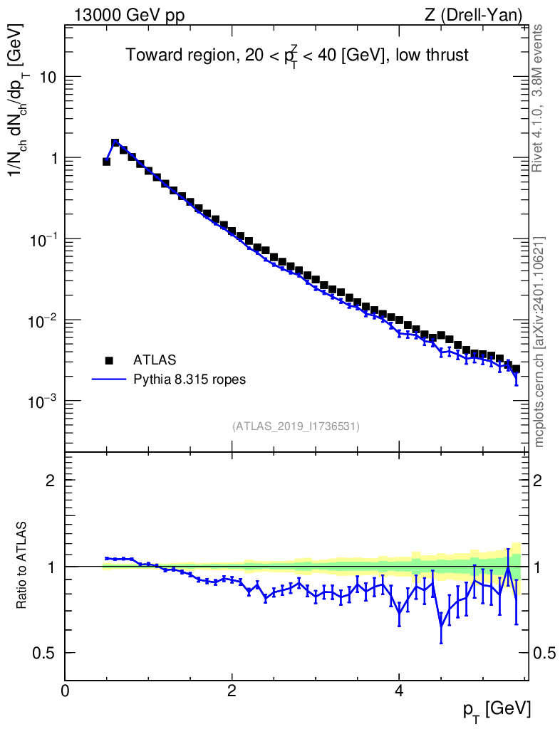 Lines: data, pythia8 8.315 ropes |