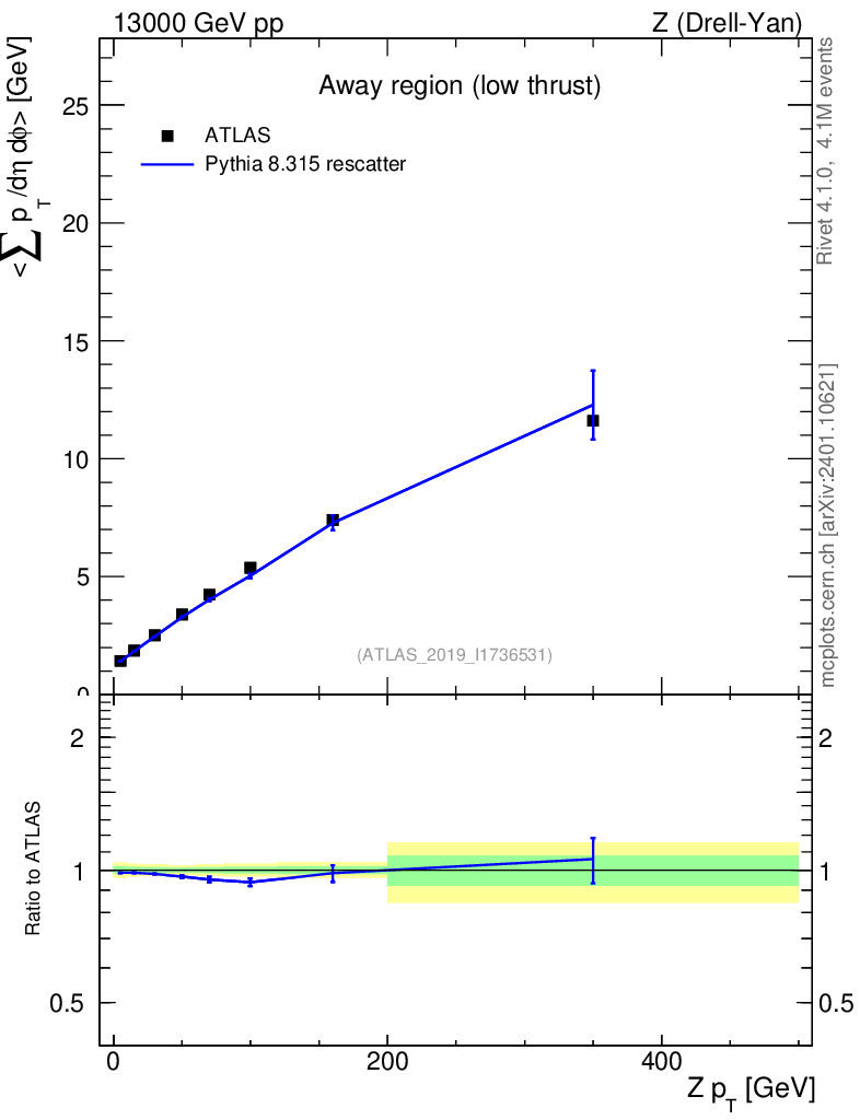 Lines: data, pythia8 8.315 rescatter |