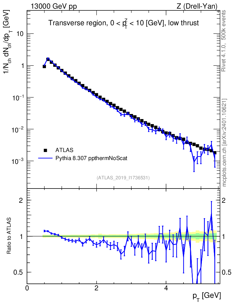 Lines: data, pythia8 8.307 ppthermNoScat |
