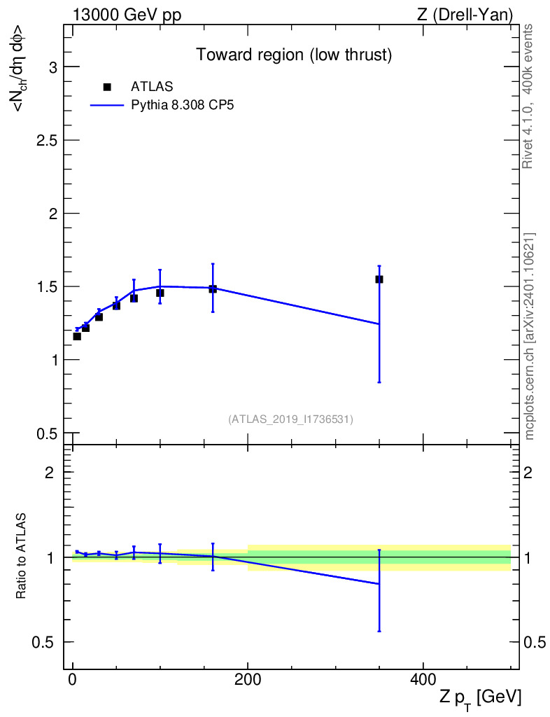 Lines: data, pythia8 8.308 CP5 |