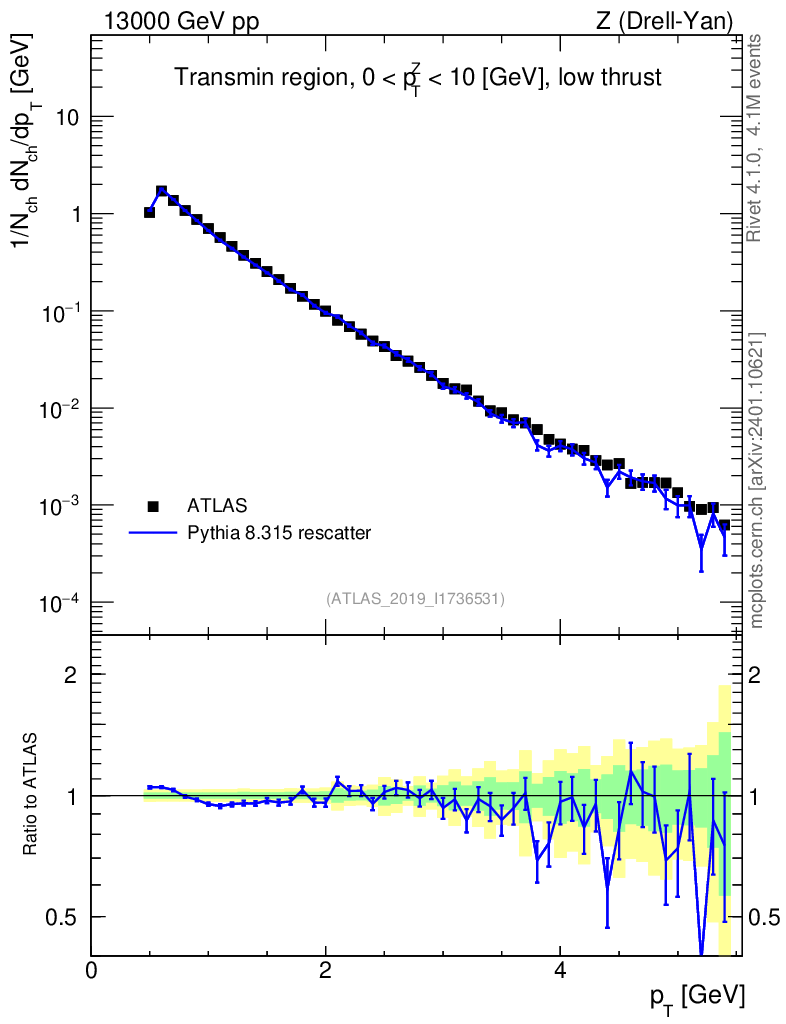 Lines: data, pythia8 8.315 rescatter |