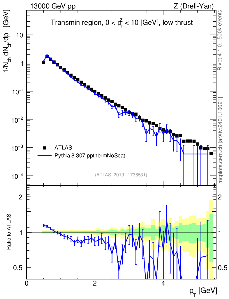 Lines: data, pythia8 8.307 ppthermNoScat |