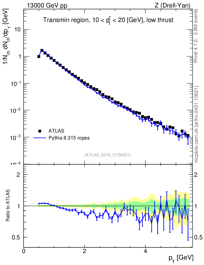 Lines: data, pythia8 8.315 ropes |