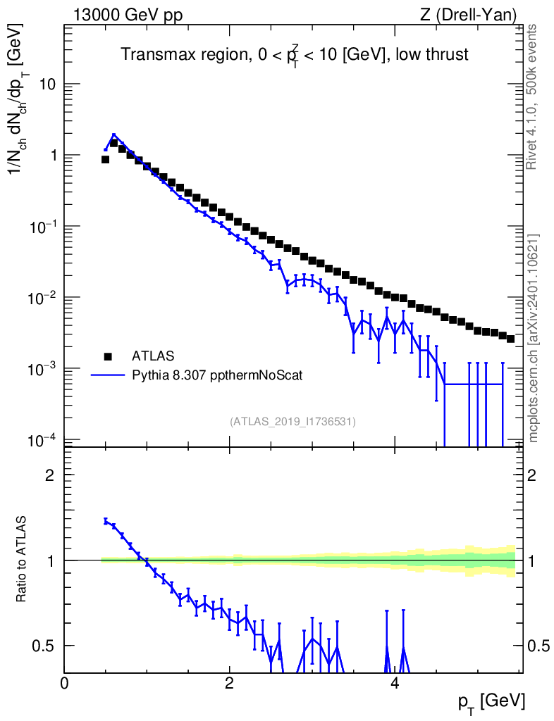 Lines: data, pythia8 8.307 ppthermNoScat |