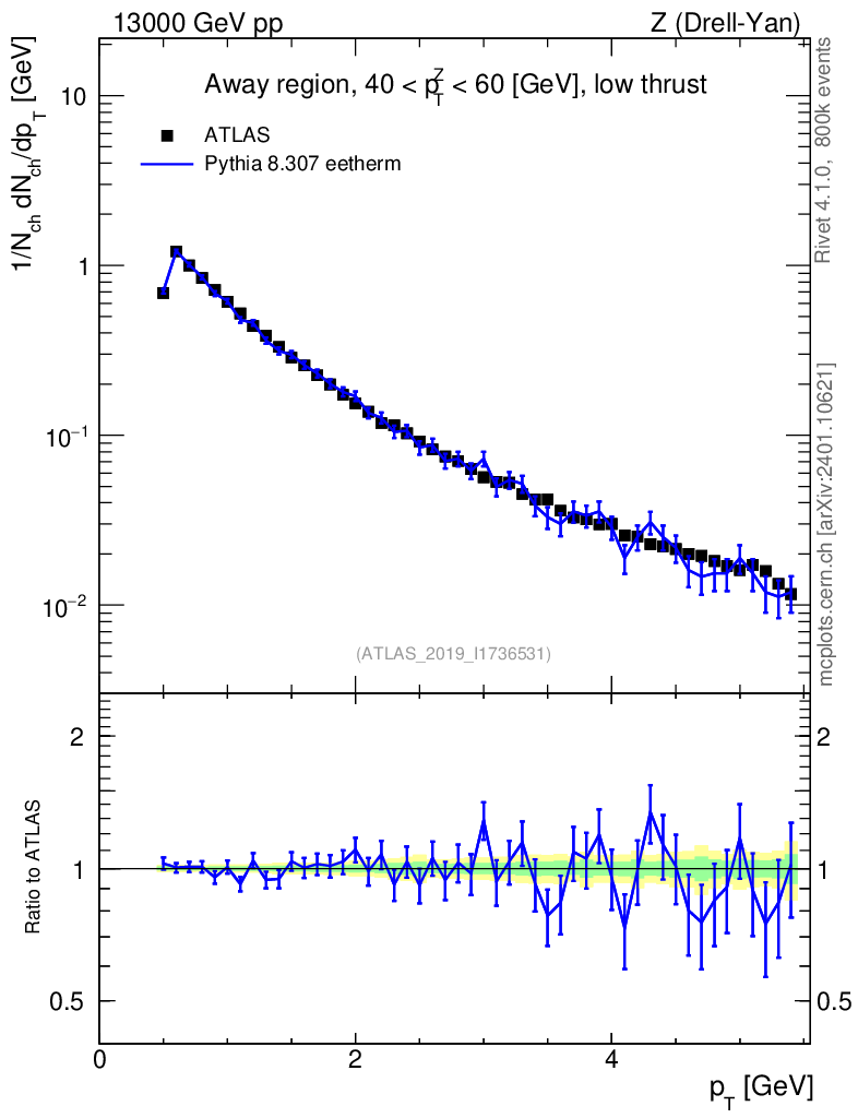 Lines: data, pythia8 8.307 eetherm |