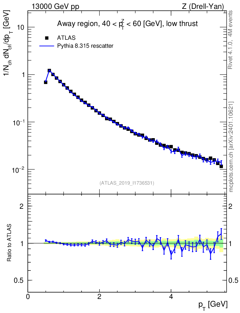 Lines: data, pythia8 8.315 rescatter |
