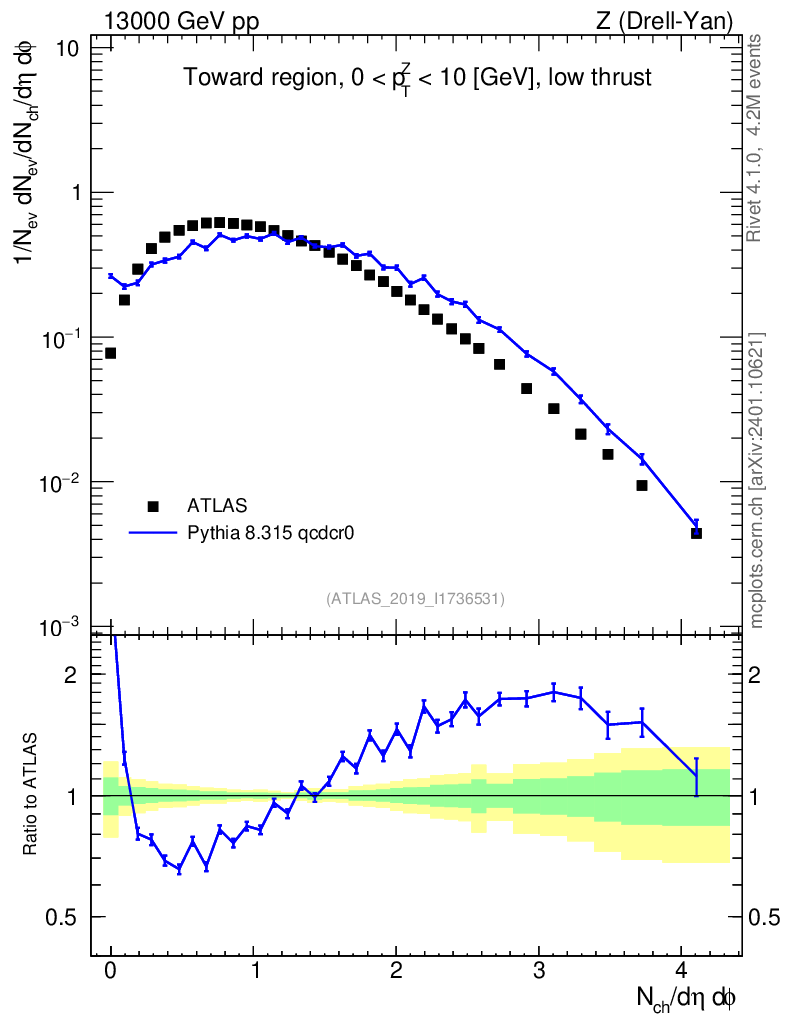 Lines: data, pythia8 8.315 qcdcr0 |