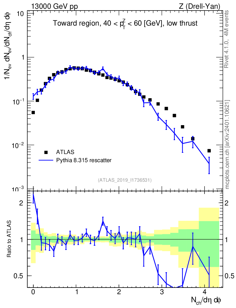 Lines: data, pythia8 8.315 rescatter |