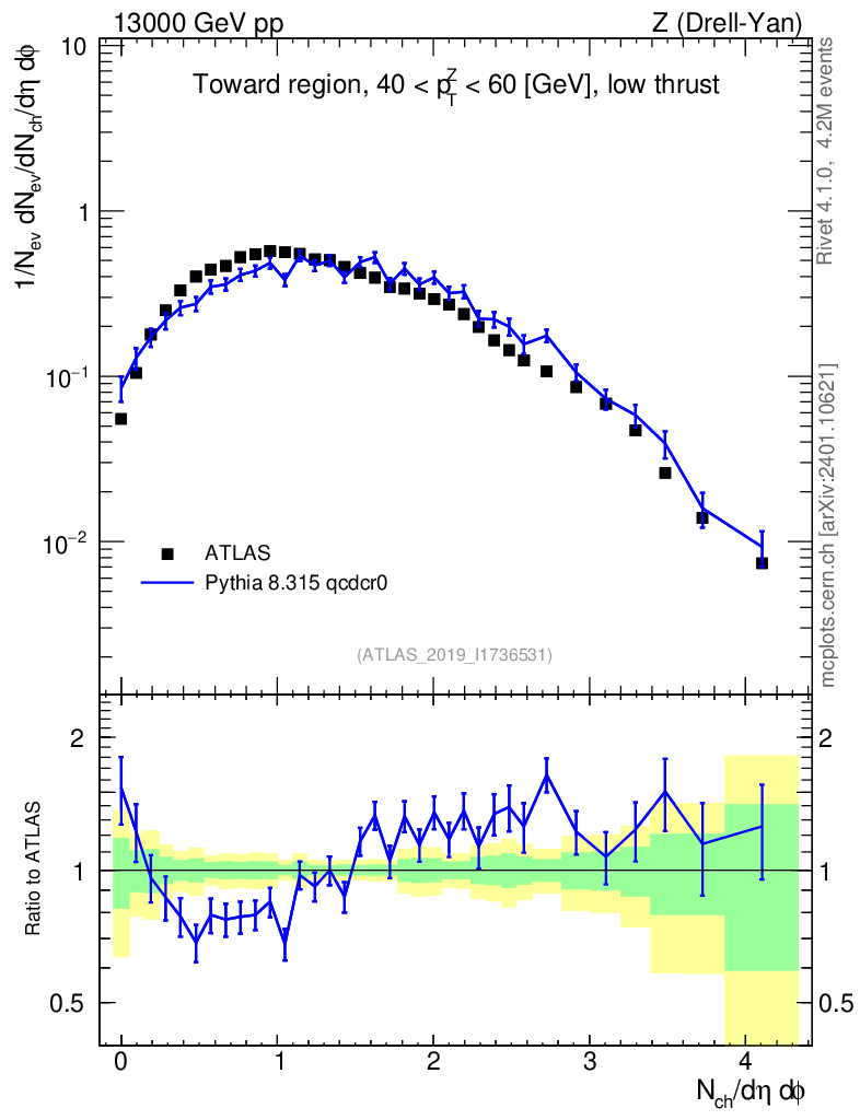 Lines: data, pythia8 8.315 qcdcr0 |