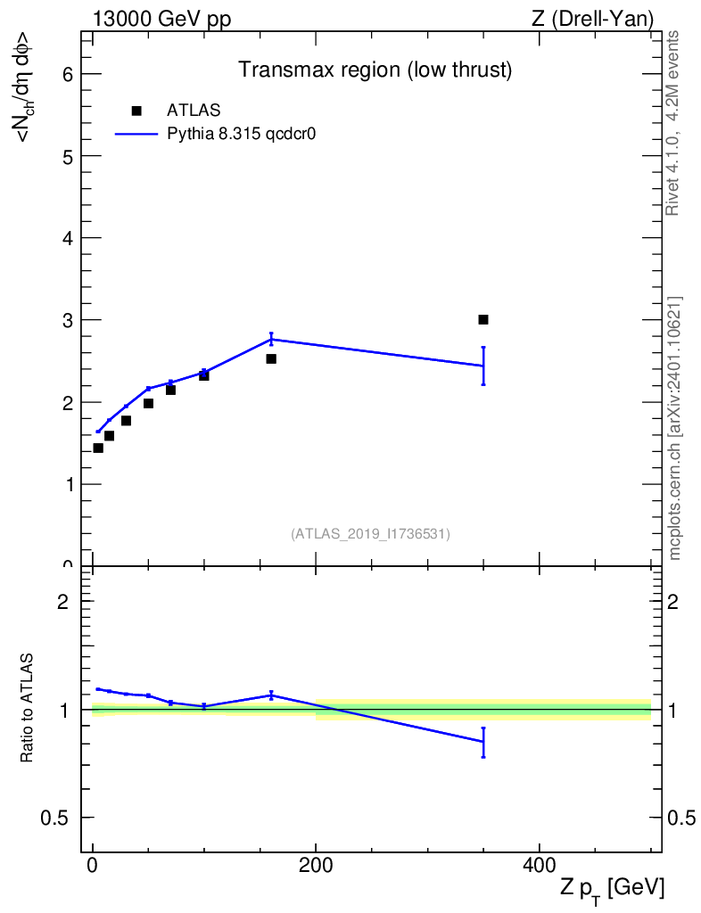 Lines: data, pythia8 8.315 qcdcr0 |