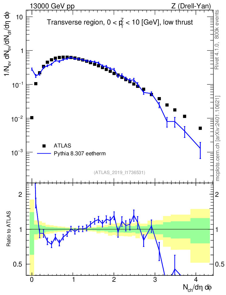 Lines: data, pythia8 8.307 eetherm |
