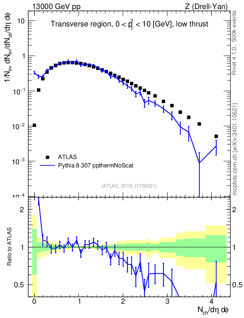 Lines: data, pythia8 8.307 ppthermNoScat |