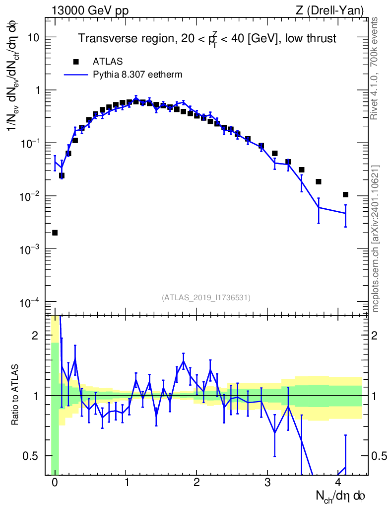Lines: data, pythia8 8.307 eetherm |