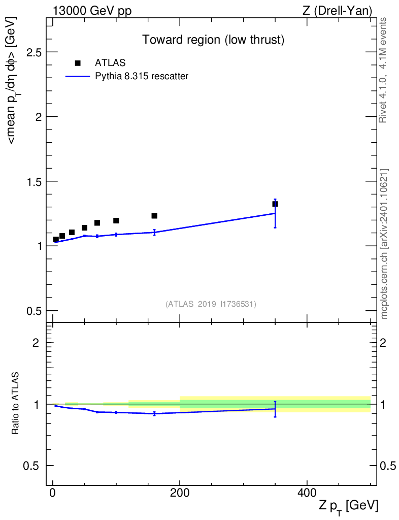 Lines: data, pythia8 8.315 rescatter |