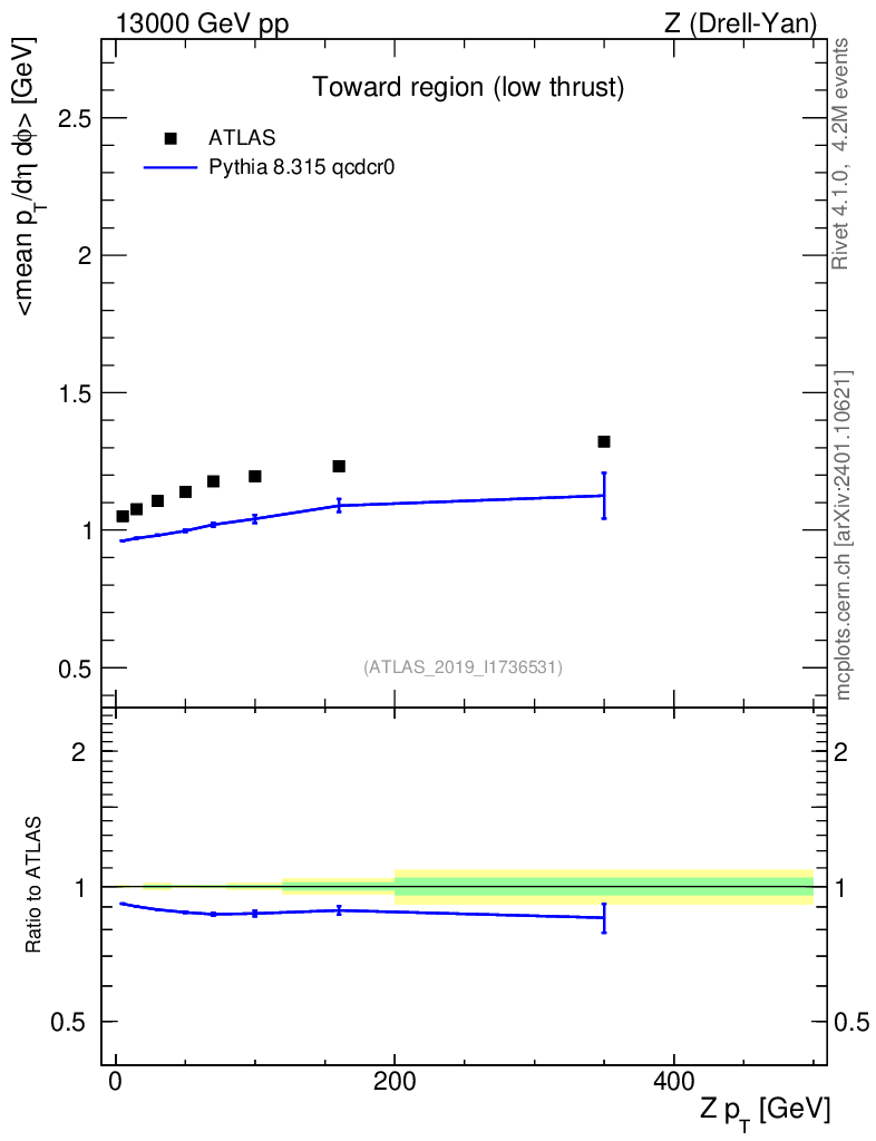 Lines: data, pythia8 8.315 qcdcr0 |