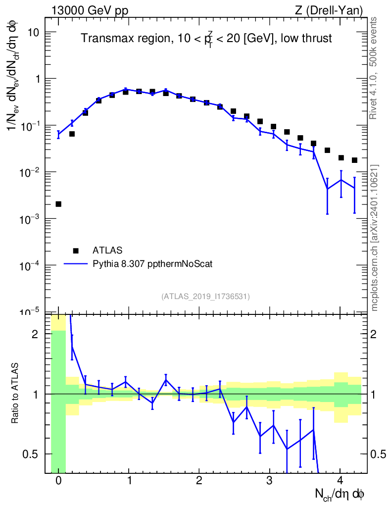 Lines: data, pythia8 8.307 ppthermNoScat |