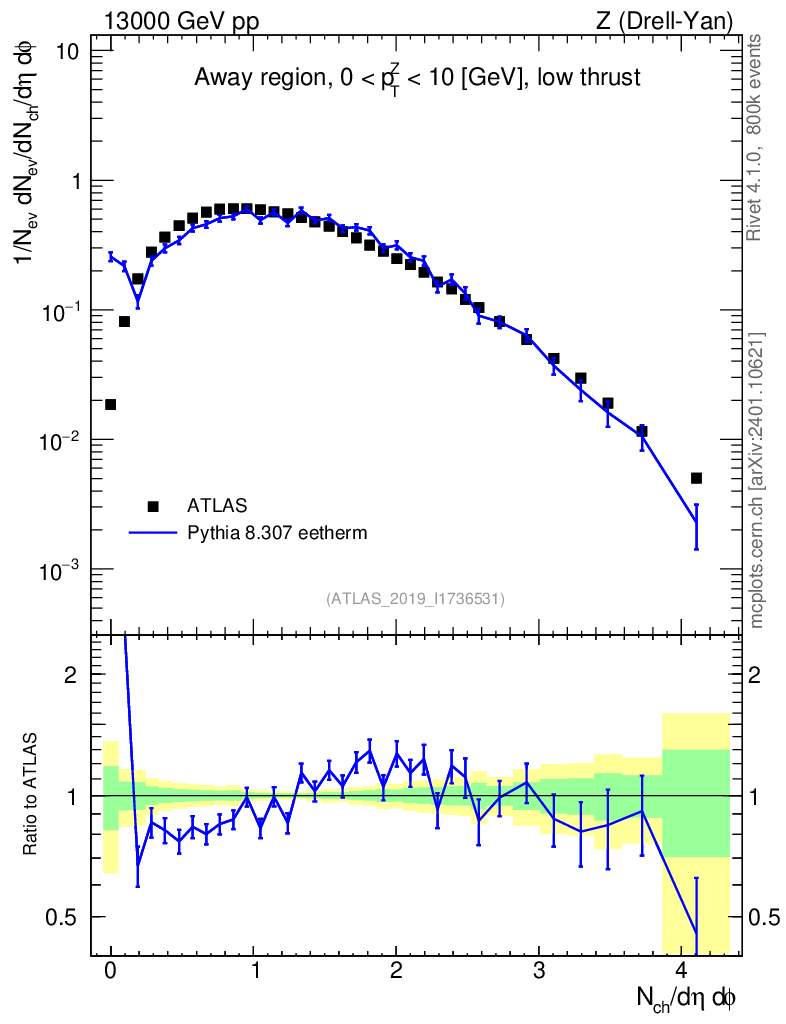 Lines: data, pythia8 8.307 eetherm |