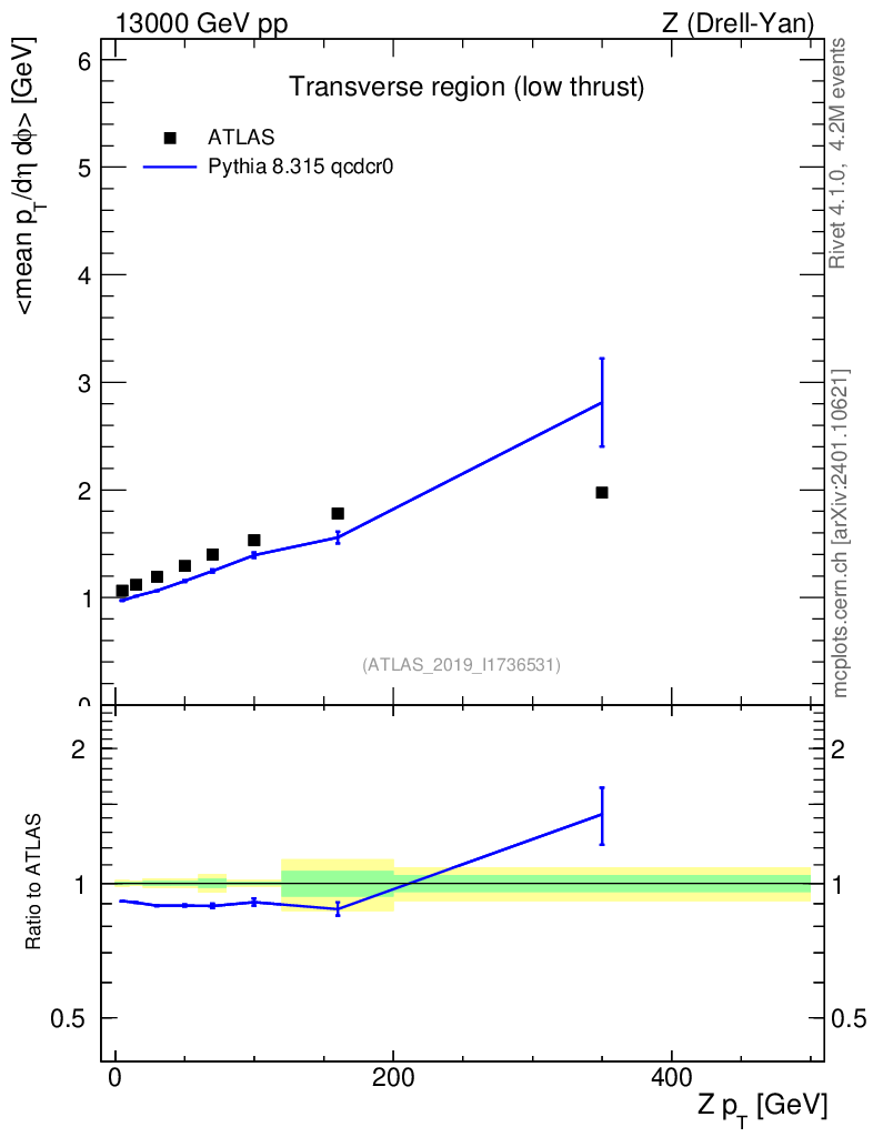 Lines: data, pythia8 8.315 qcdcr0 |
