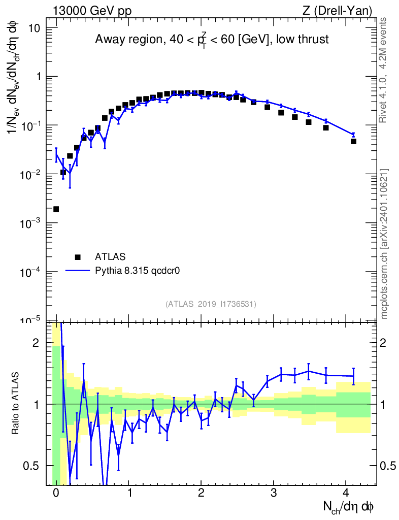 Lines: data, pythia8 8.315 qcdcr0 |
