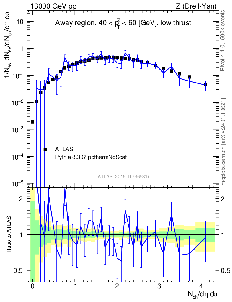 Lines: data, pythia8 8.307 ppthermNoScat |