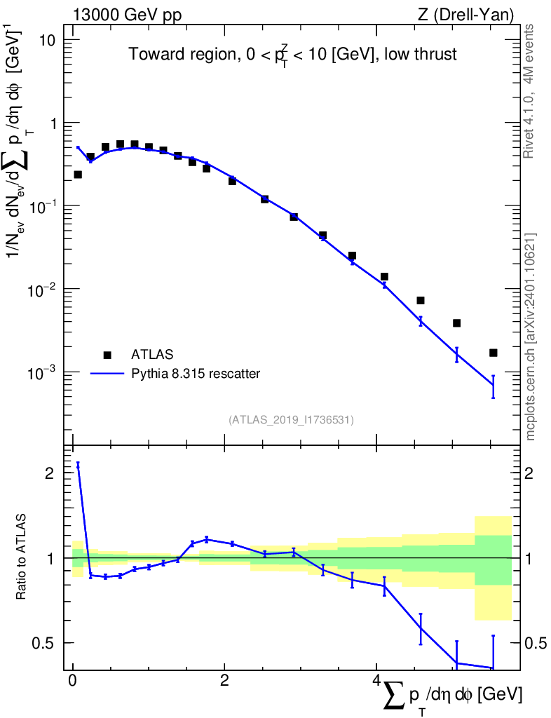 Lines: data, pythia8 8.315 rescatter |