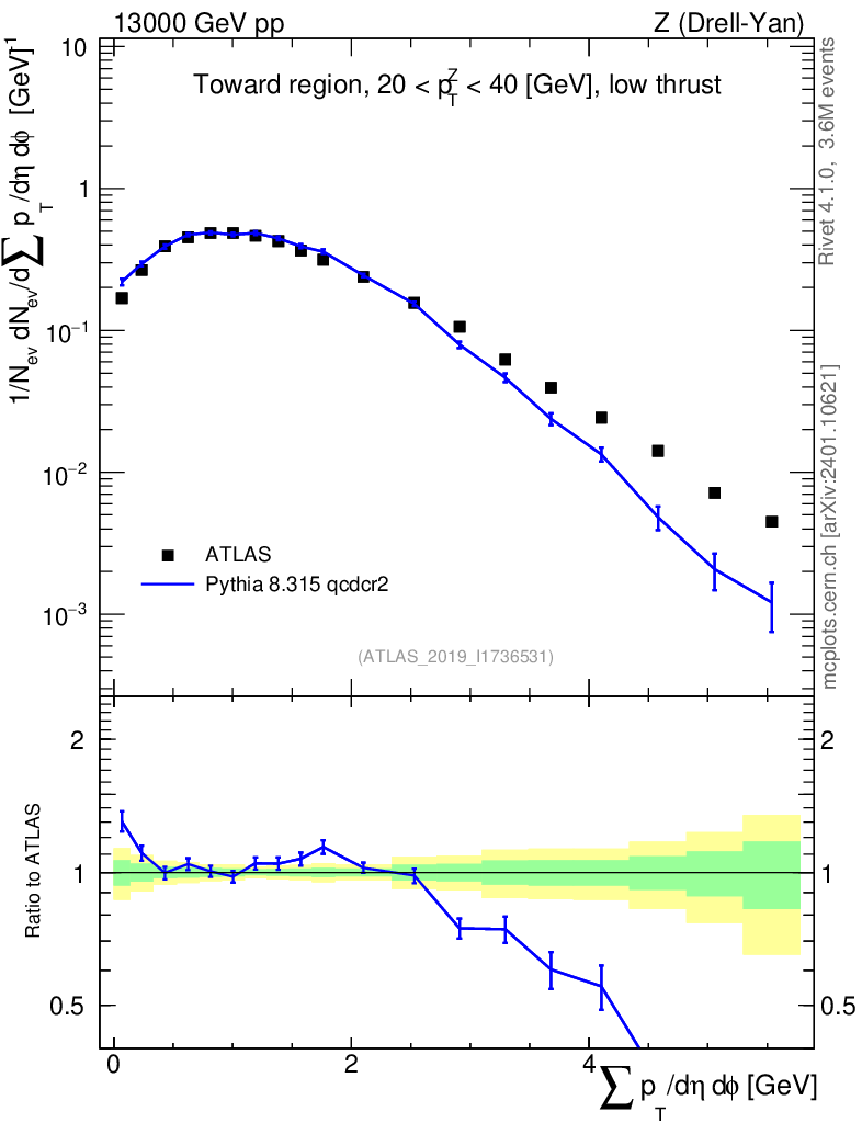 Lines: data, pythia8 8.315 qcdcr2 |