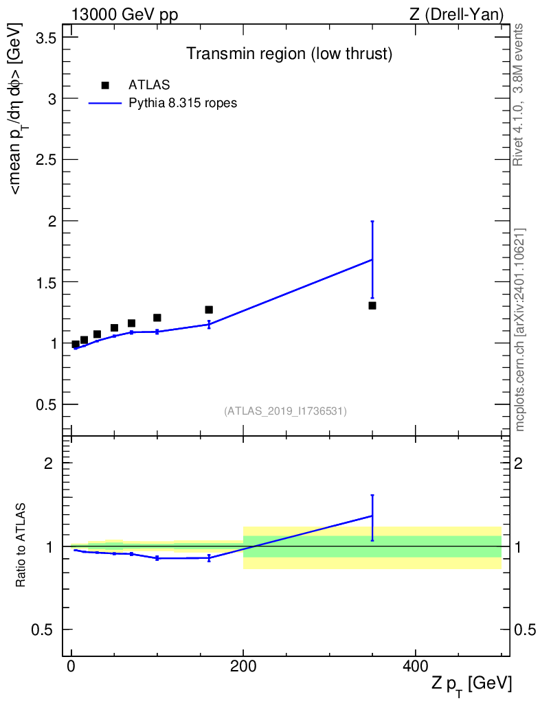 Lines: data, pythia8 8.315 ropes |