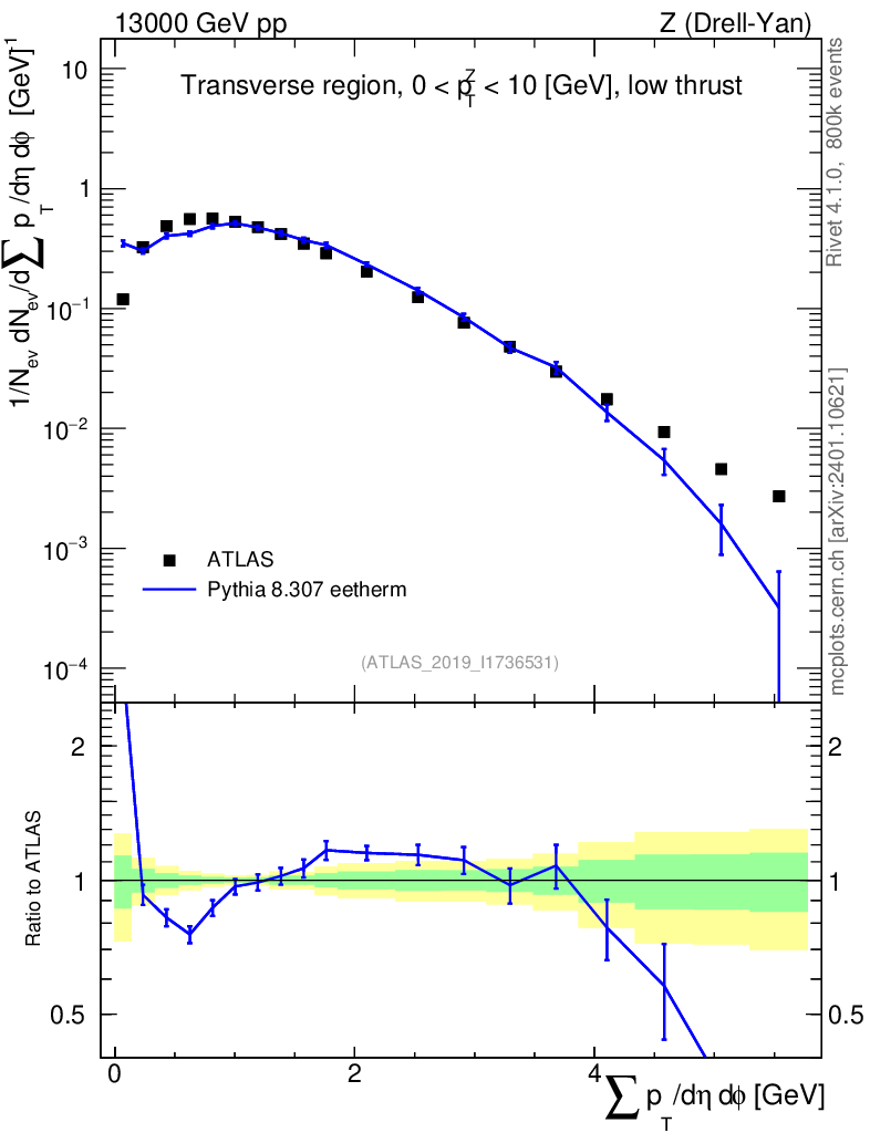 Lines: data, pythia8 8.307 eetherm |