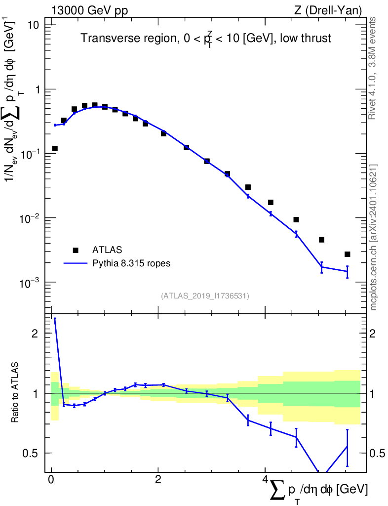 Lines: data, pythia8 8.315 ropes |