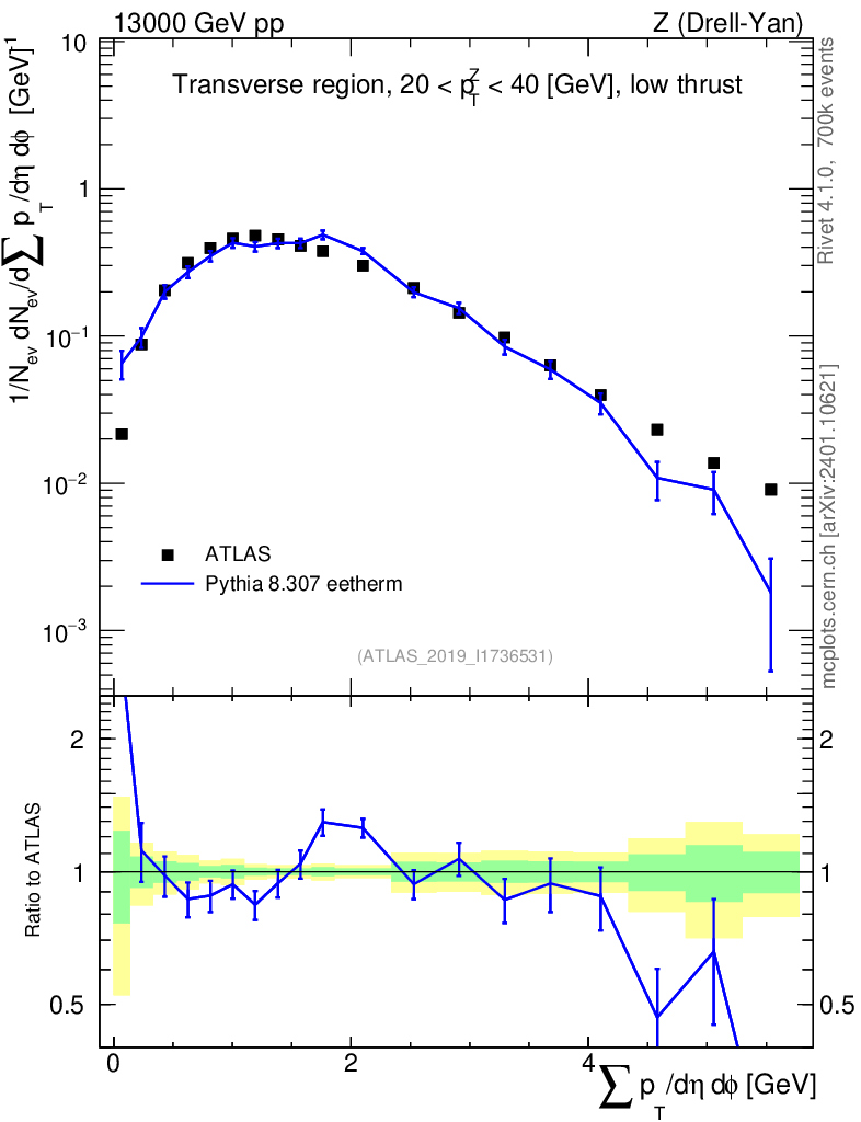 Lines: data, pythia8 8.307 eetherm |