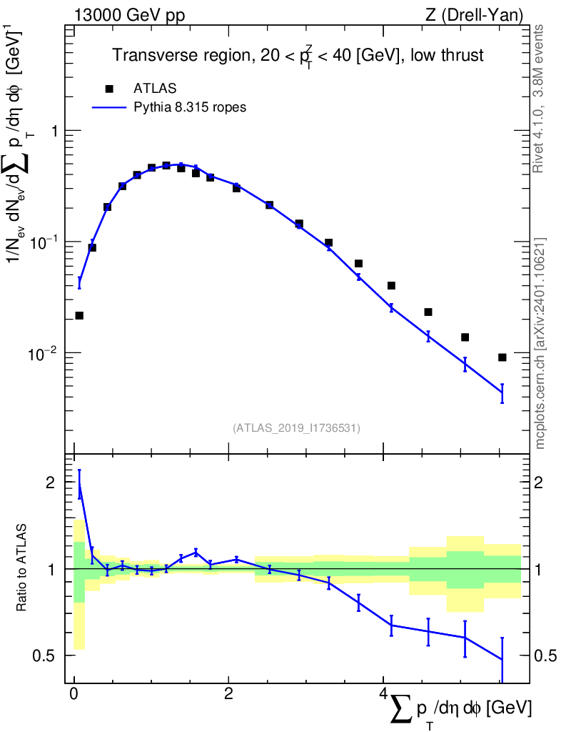 Lines: data, pythia8 8.315 ropes |