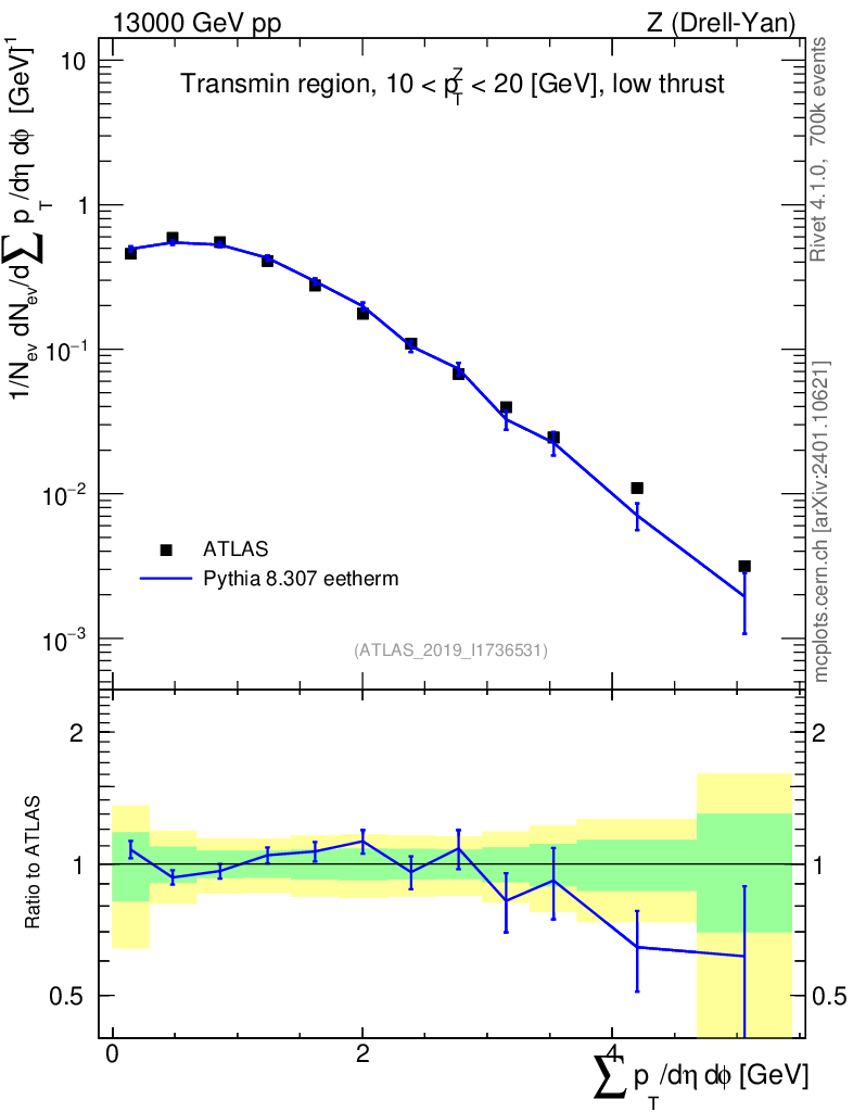 Lines: data, pythia8 8.307 eetherm |