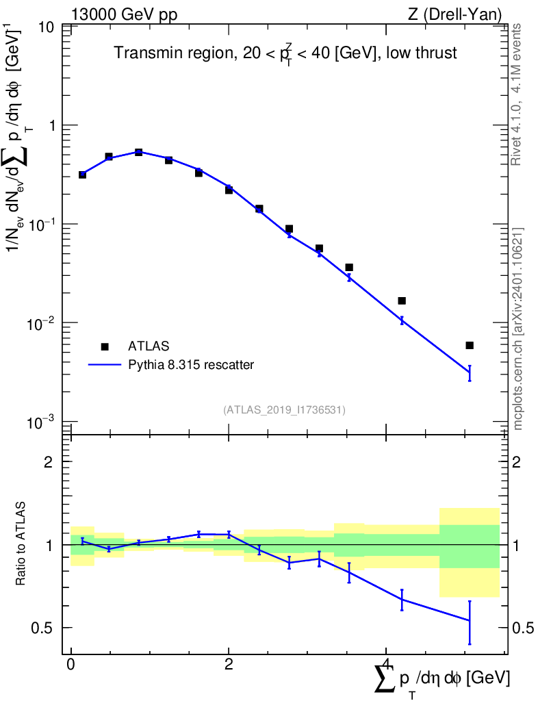 Lines: data, pythia8 8.315 rescatter |