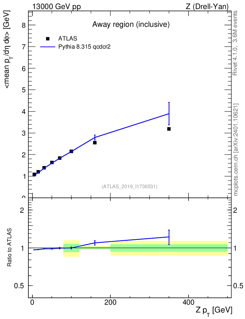 Lines: data, pythia8 8.315 qcdcr2 |
