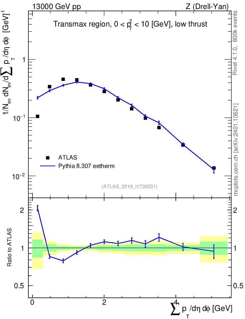 Lines: data, pythia8 8.307 eetherm |