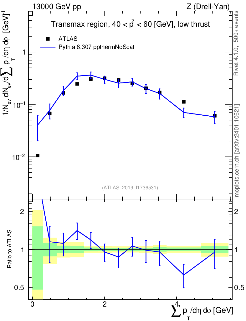 Lines: data, pythia8 8.307 ppthermNoScat |
